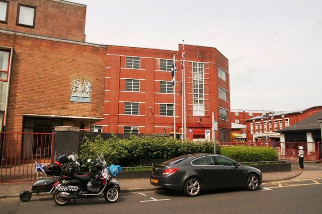 Nach einem leckeren Frühstück und bei leicht bedeckten, wolkigen Himmel machten wir uns auf den Weg. Unser erstes Ziel an diesem Tag war in Kilmarnock die Distillerie von Johnny Walker. Am Firmengelände fanden wir aber nur noch die verblichenen Buchstaben und das Wappen an der Gebäudefront vor.