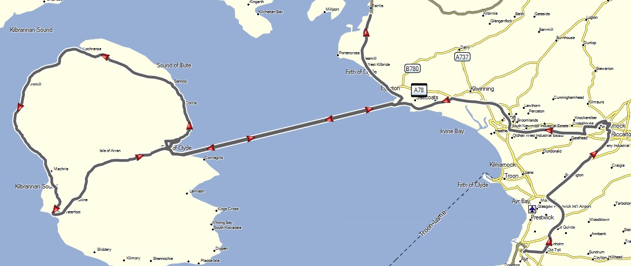 Da wir noch ein bisschen Zeit bis zur Abfahrt der Fähre hatten wollten wir im einem Garten eines Hotel-Restaurants noch etwas trinken. Leider waren wir wohl in unserem Aufzug nicht standesgemäß, da wir vom Servicepersonal total ignoriert wurden. Dies war die einzige negative Situation für mich bei den sonst sehr netten und hilfsbereiten Schotten.Auf der ruhigen Überfahrt zurück nach Ardrossan konnten wir die Sonne so richtig genießen und volle Energie auftanken.