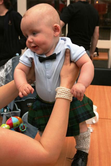 Bei der Rückkehr von Ines stellten wir fest, dass wir langsam etwas für den Magen brauchten. In der Tartan Weafing Mill befinde t sich ja auch ein Cafe. Also nichts wie hin. Dass die Schotten genauso traditionsbewusst wie die Bayern sind wusste ich ja schon lange. Was bei uns die Lederhose ist in Schottland der Kilt. Und wie bei uns bekommen schon die Babies ihre traditionelle Ausstattung. Ich fühlte mich so richtig heimisch.
